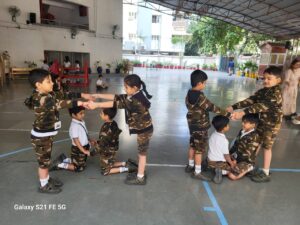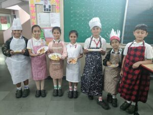 To make the day even more delightful, the teachers put up wonderful performances for the students. They danced gracefully, sang melodious songs, and engaged the children in various enjoyable games. Laughter and happiness filled the classrooms as students took part in different class activities designed to spark creativity and teamwork. A highlight of the celebration was the Young Chef Activity, where students prepared delicious non-fire food items. They proudly shared their yummy creations with teachers, aayas, guards, and everyone around them, spreading love and joy through food.