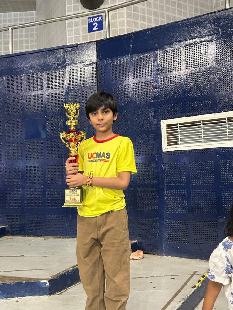 St. Kabir School, Naranpura, is delighted to announce the remarkable accomplishment of Jaineel Jain of std 3, who secured 3rd rank in the prestigious UCMAS National Exam Competition held at Hyderabad. This annual and standardized test is designed to assess the proficiency of students in abacus and mental math, drawing participants from across the country. Jaineel’s achievement reflects his exceptional numerical skills, concentration, and logical thinking abilities. UCMAS is not just about solving sums—it is a unique program that enhances memory, accuracy, speed, and confidence among young learners. Competing at the national level requires immense practice and dedication, and Jaineel proved his mettle by standing out among many talented participants.