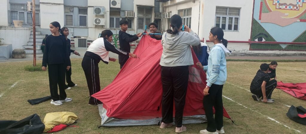 The camp began with a warm welcome, Students were divided into groups and took part in various interesting and challenging outdoor games. Some of the most enjoyable activities included Spider Web, Hop-Skip-Stack, Tent Pitching, and many other team-based games. Each activity tested students’ balance, patience, strength, and cooperation. The Spider Web game taught problem-solving and teamwork, while Hop-Skip-Stack improved coordination and focus. Tent Pitching was the most exciting activity for many, as students learned how to set up tents on their own. Through this, they developed survival skills, leadership, and responsibility.